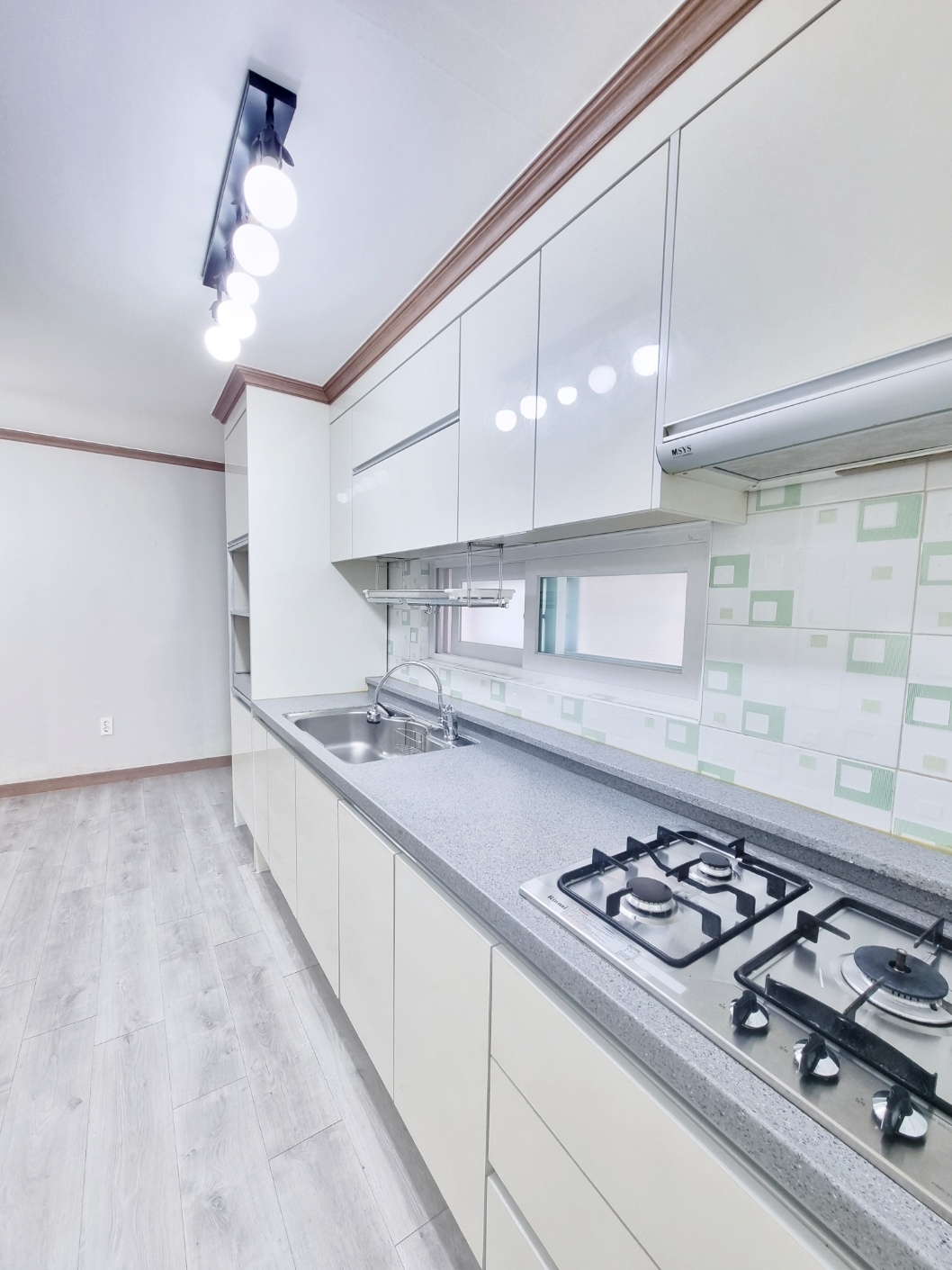 ◑ 주방구조는 안쪽에 있으며 수납공간이랑 전자렌지 밥통수납이 있어 편해요