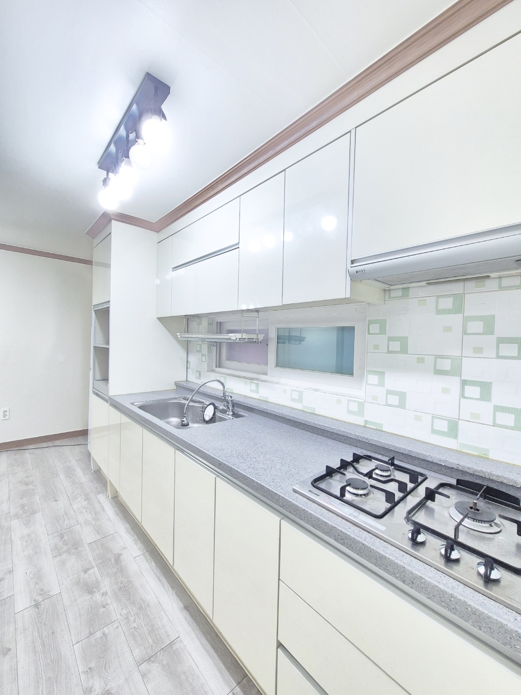 ◑ 주방구조는 안쪽에 있으며 수납공간이랑 전자렌지 밥통수납이 있어 편해요